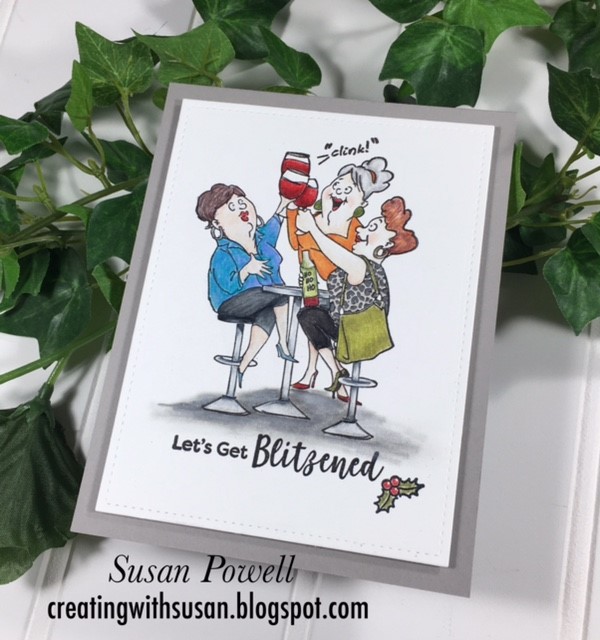I decided that some of my Christmas cards this year were going to be alcohol related. It's been that kind of a year. the Wine Divas Stamp set from Art Impressions paired with the Sassy Pants Holiday Stamp Set from My Favorite Things is perfect for the wine drinkers on your list.