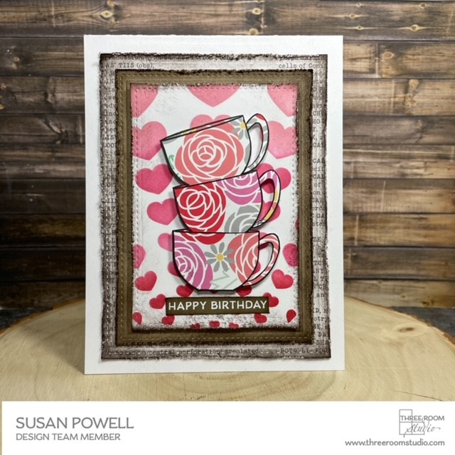 Welcome to the first Saturday Challenge of 2023 with Three Room Studio. This week we are using the photo below as inspiration. I was inspired by the hearts and the flowers and chose to make a heart background for my flower covered mugs.